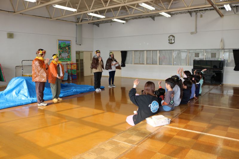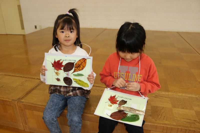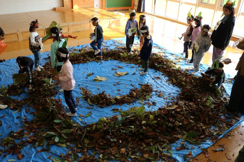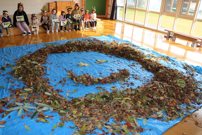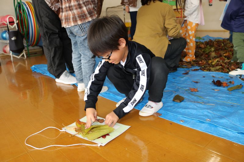 あそパク隊のお母さん達と同じように、葉っぱの冠を作りました。