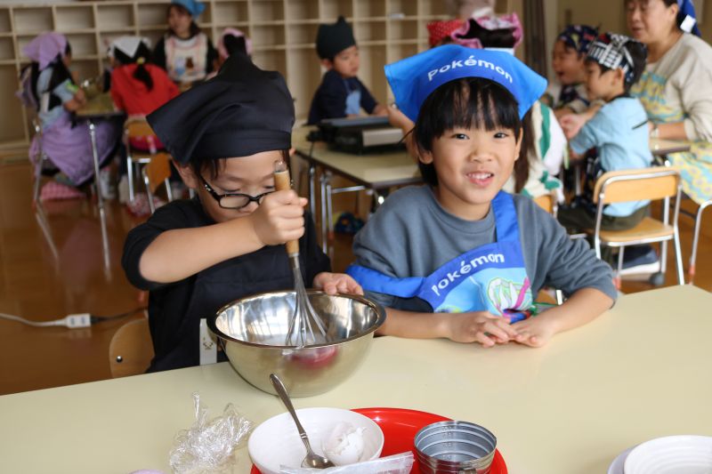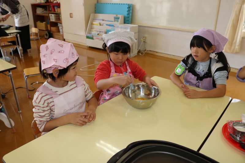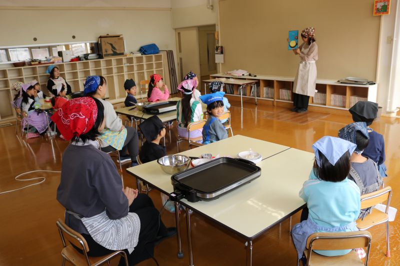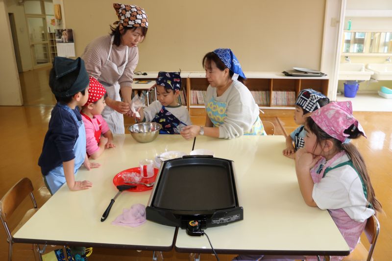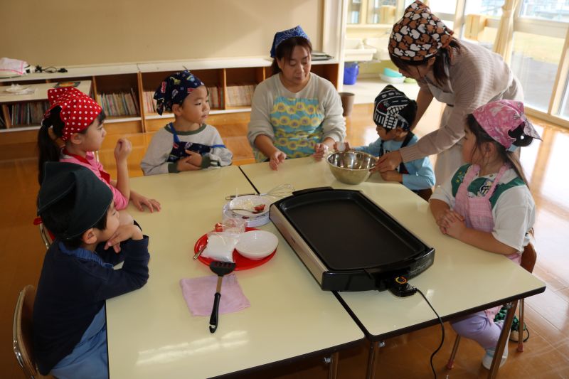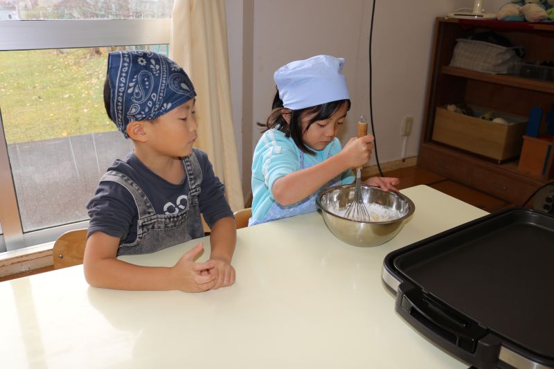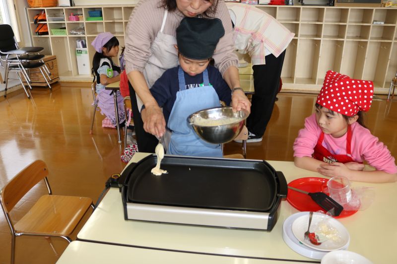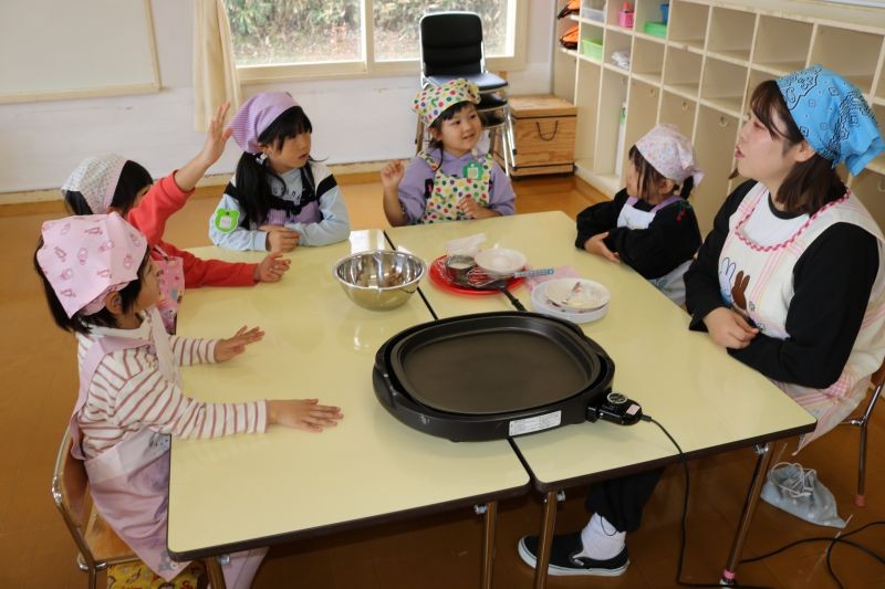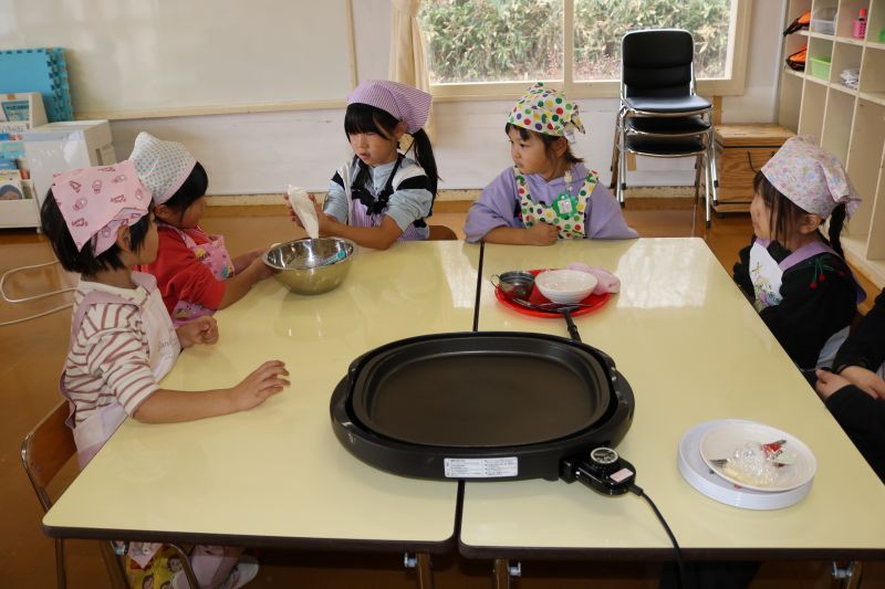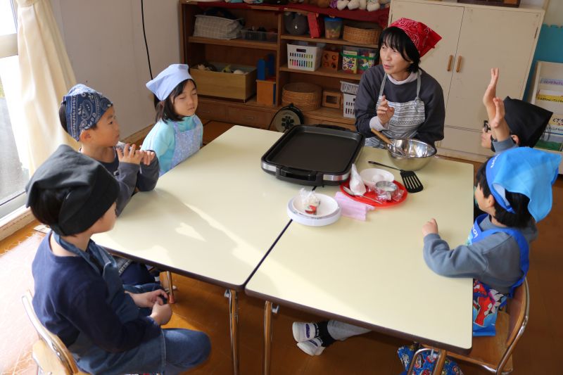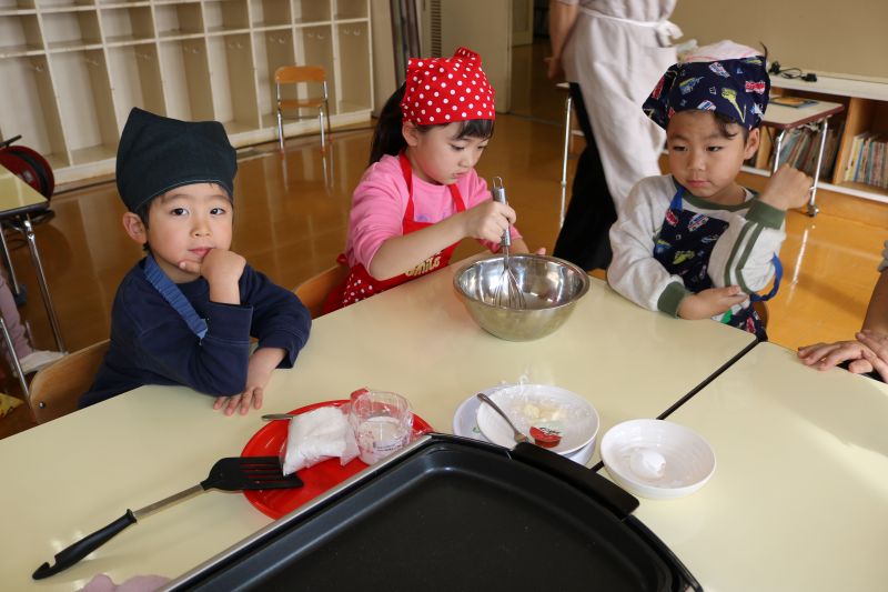 「おつきさまのパンケーキ」の絵本を読んで、いよいよ始まりです。