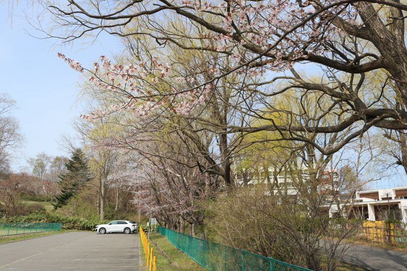グラウンドの横にある第2駐車場の桜が