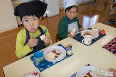入場は手拍子で、名札も園長が名前を呼んで、一人一人の胸に付けました。