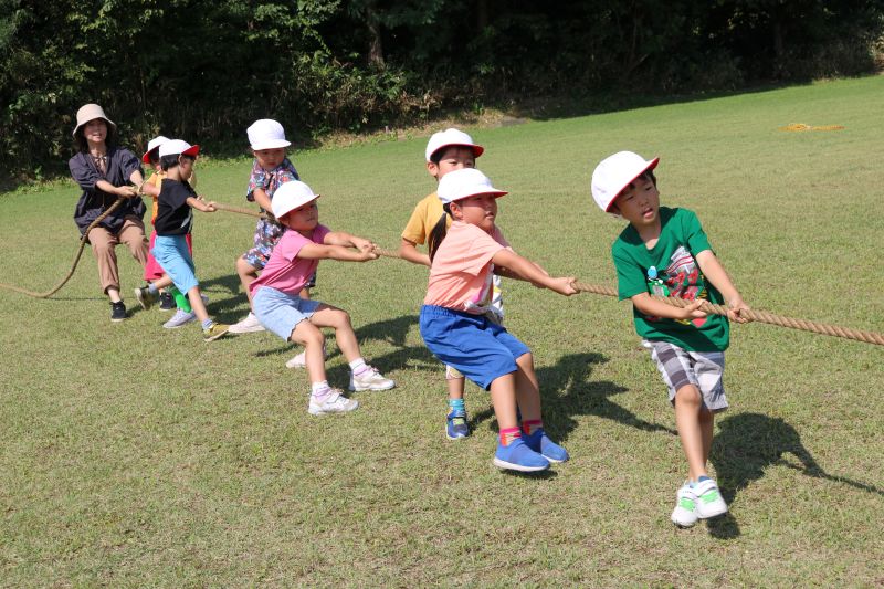 綱引き、今年は担任も参加です。