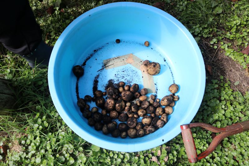 土がついたジャガイモを集めていきます。
