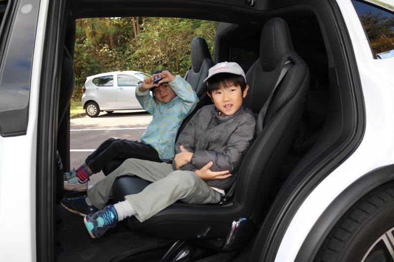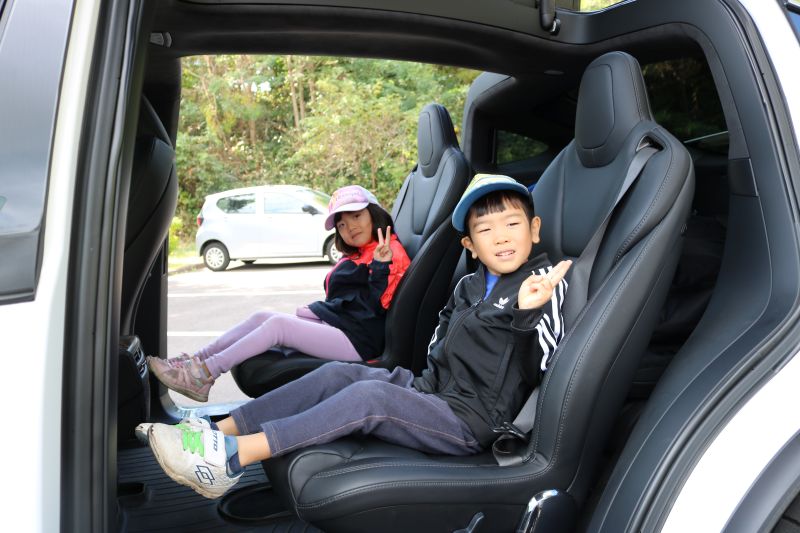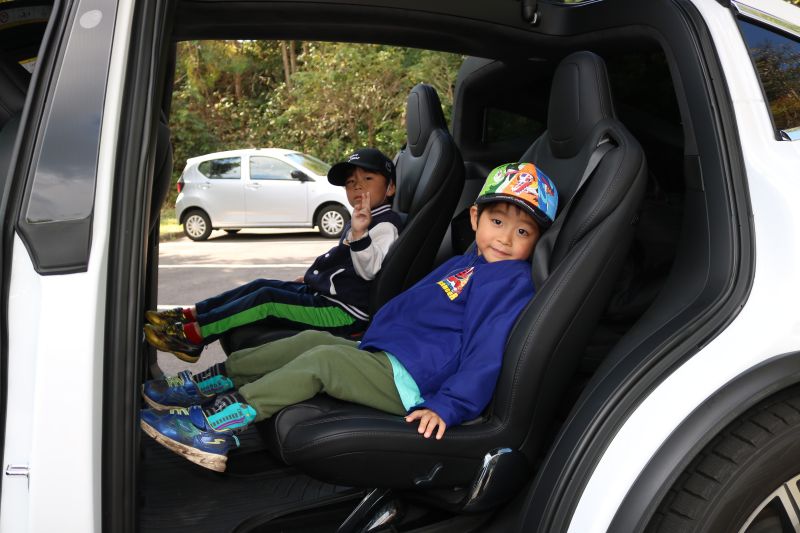 2人ずつ、未来のくるまに乗せてもらいました。