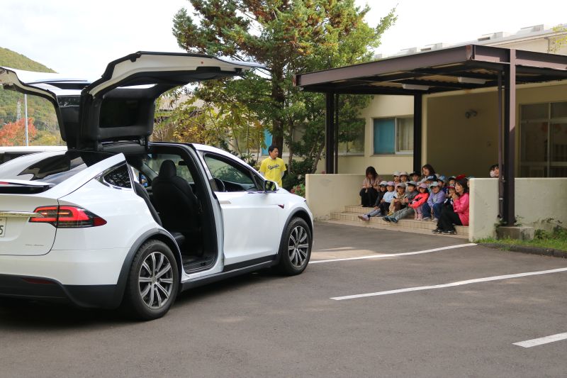 附属幼稚園に「未来のくるま」を運んできてくれました。
