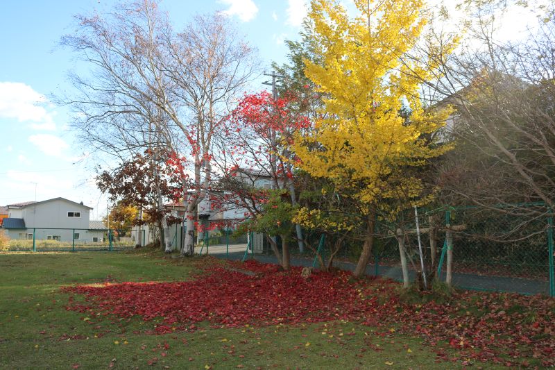 園庭の紅葉やイチョウの木、きれいな色に変わっていました。
