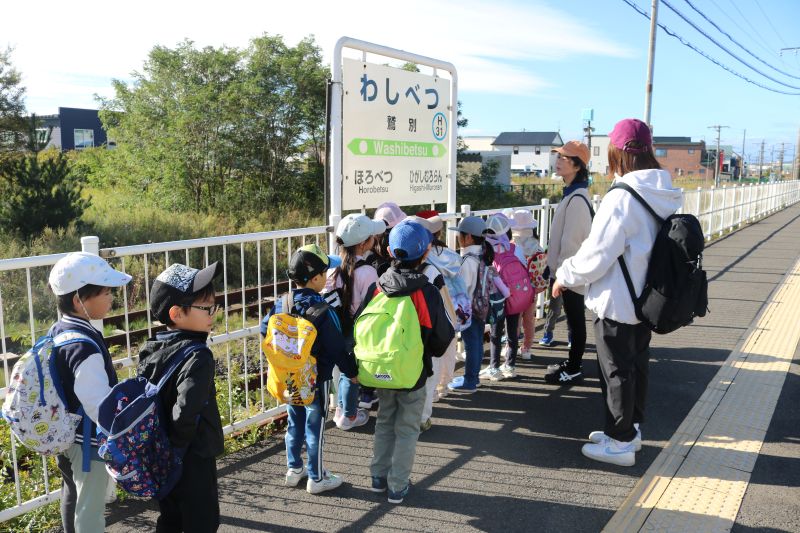 鷲別駅には、いつもの登園より少し早い8:30の集合です。