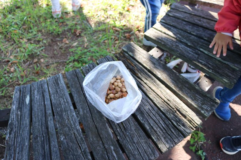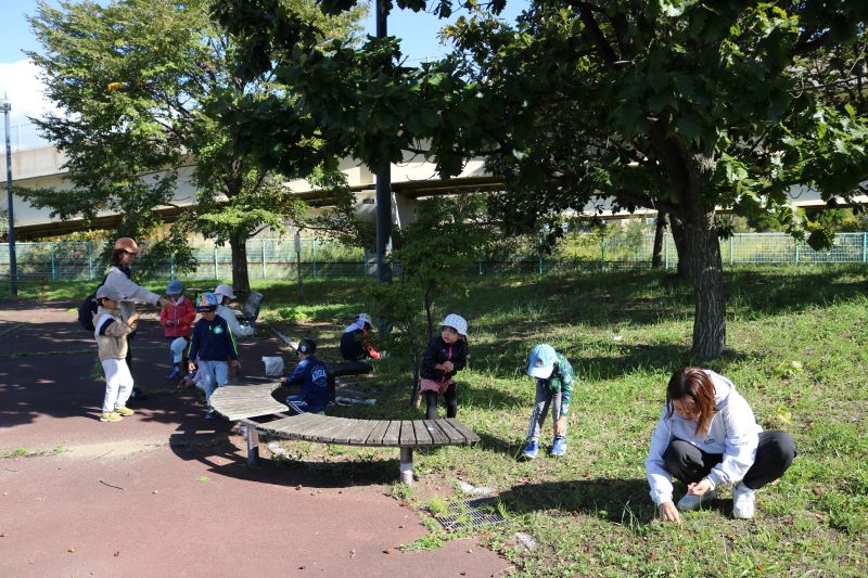 いっぱい見つけ、「今度、幼稚園でどんぐり遊びをしよう」と集めました。